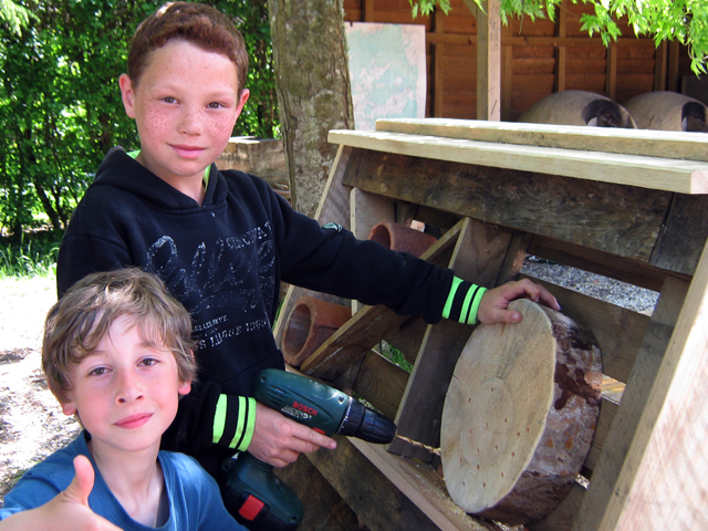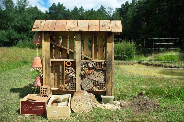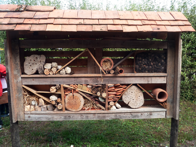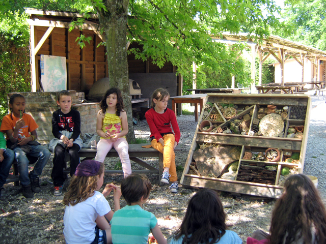 Avant de venir au centre, il sera nécessaire que la classe se questionne pour trouver un lieu adapté à l’installation de l’hôtel. Ça peut être dans la cours de l’école, dans un espace public de la commune… dans cette dernière possibilité l’intérêt peut être d’impliquer les enfants dans la prise de contact avec la mairie, de valoriser leur travail en sensibilisant la population locale par le biais d’un panneau explicatif…