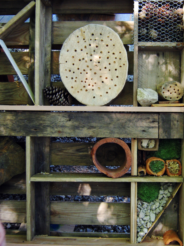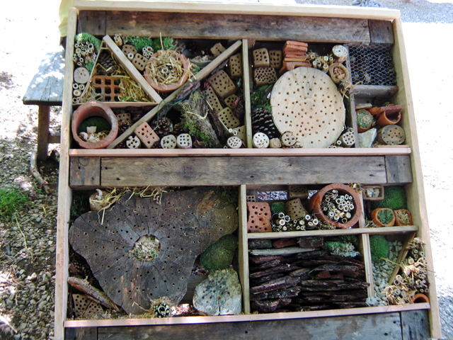 Après avoir découvert le monde des petites bêtes terrestres et aquatiques lors des activités (voir la page découverte du milieu), les enfants commenceront à se questionner sur l’intérêt de leur offrir un lieu de vie et de protection. Quelle forme pourrait prendre notre hôtel, comment pourrions nous réaliser cette construction à moindre coup, en favorisant le matériel de récupération et le recyclage.