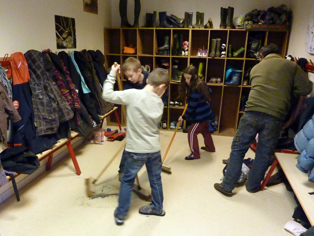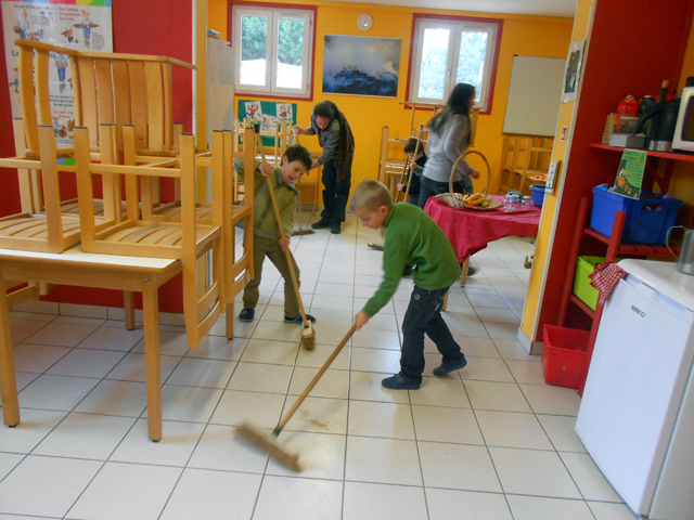 Les enfants répartis en équipes, participent à la mise de table, au débarrassage, au balayage des parties communes…